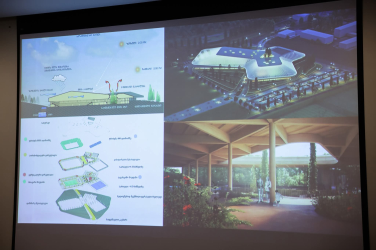 გათვალისწინებულია 350 ადგილიანი ავტოსადგომის, რეკრეაციული ზონების,