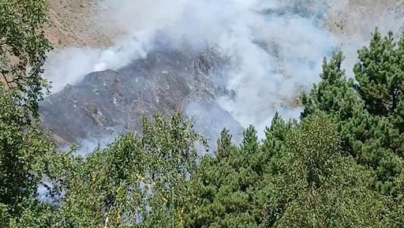 სოფელ ხანის მიმდებარედ, ტყის ფერდობზე გაჩენილი ხანძარი
