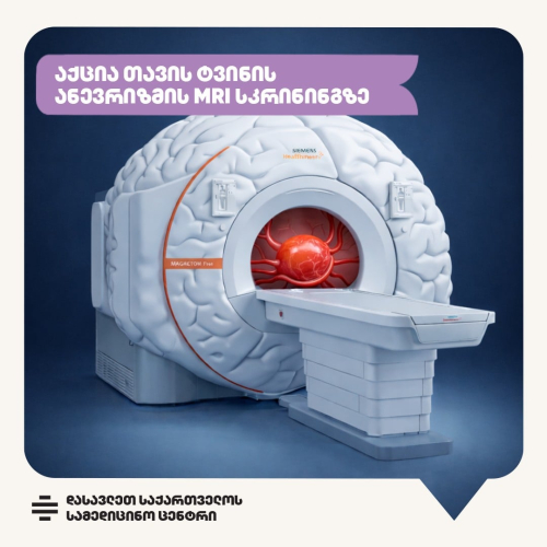 დასავლეთ საქართველოს სამედიცინო ცენტრი ყოველი თვის ბოლო შაბათს მოსახლეობას სთავაზობს თავის ტვინის ანევრიზმის MRI სკრინინგს — თანამედროვე, მაღალი სიზუსტის აპარატურით, რაც კვლევის სანდოობას, ხარისხს და სიცოცხლისთვის საშიში მდგომარეობების დროულ გამოვლენას უზრუნველყოფს.
